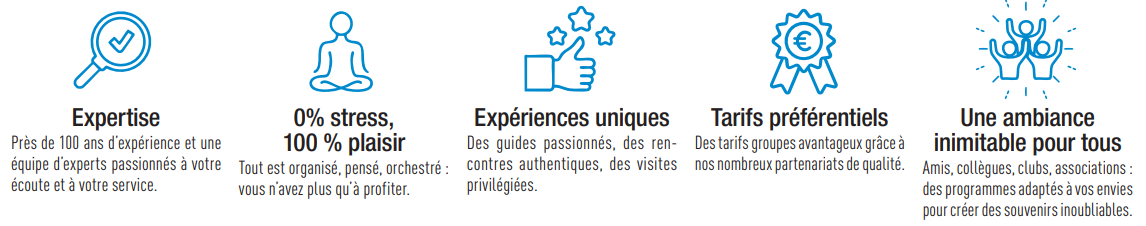 De 10 à plus de 200 personnes, nous créons votre voyage ! Que vous soyez une petite équipe ou un groupe important, nous mettrons en place un séjour taillé sur mesure avec des prestations adaptées à vos besoins, vos envies et surtout à votre budget.